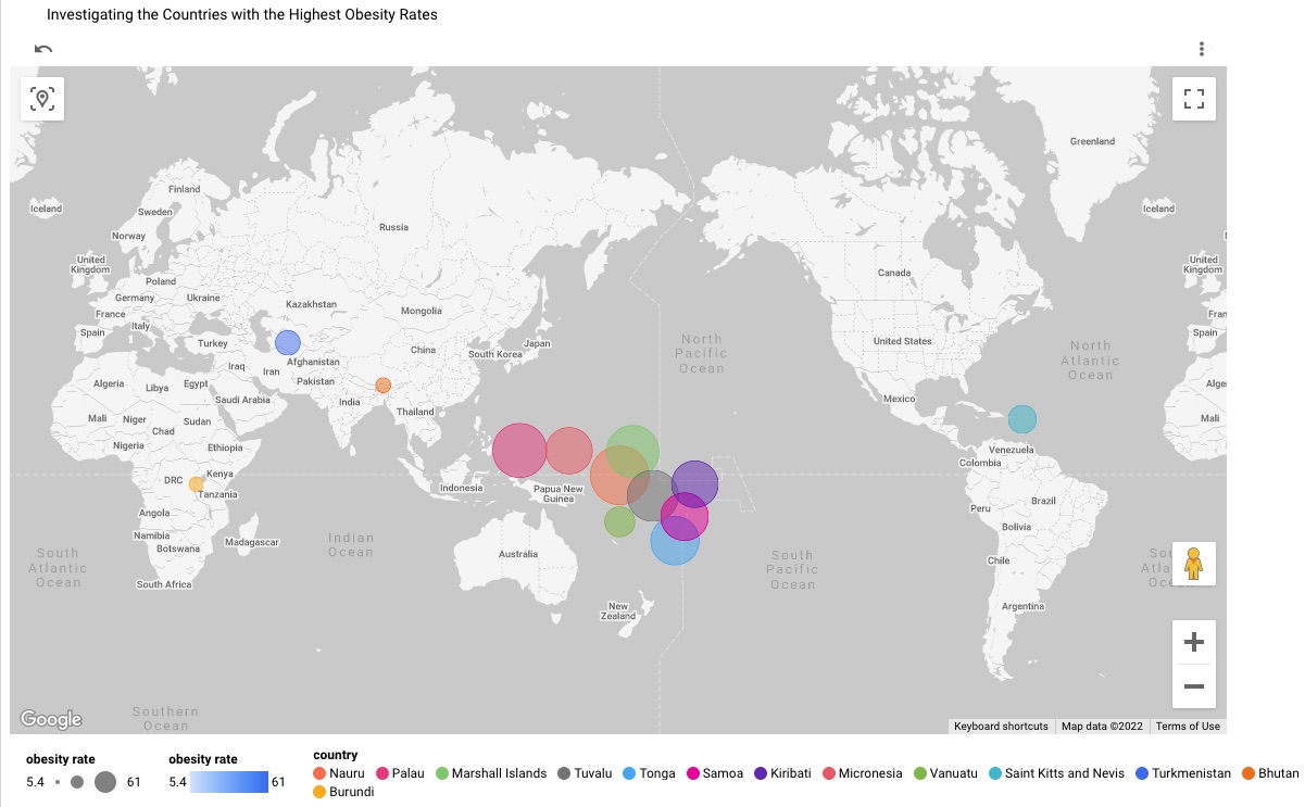 Obesity rates outliers: Nauru was the outlier with the highest Obesity rate in the world. Nauru is also a high income country and had its first covid case in 2022 when it was likely the milder Omicron variant. However, the story of Nauru is tragic and there are several factors that have contributed to its disease burden, including Diabetes.