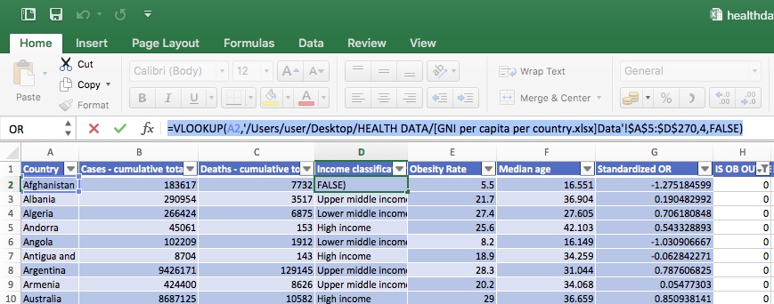 Using Excel pivot tables and charts the data was quickly grouped into 4 World Bank income classifications.